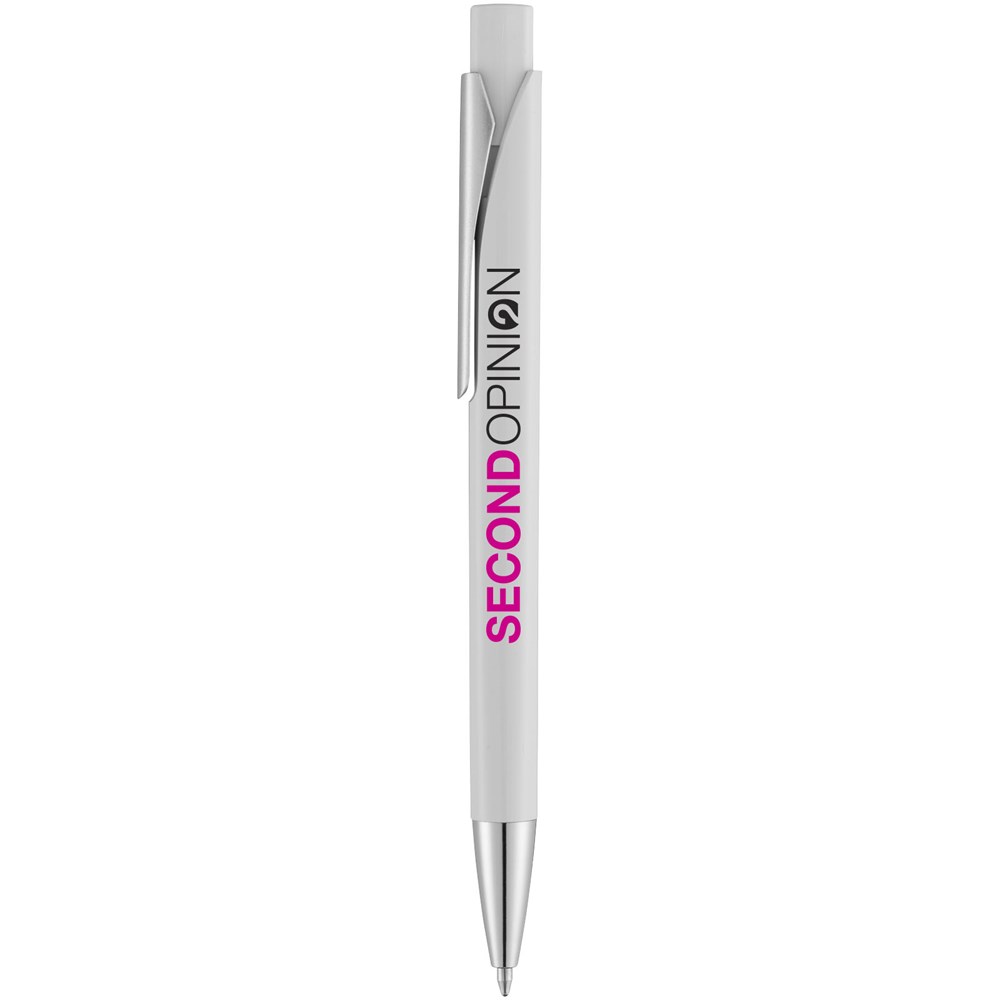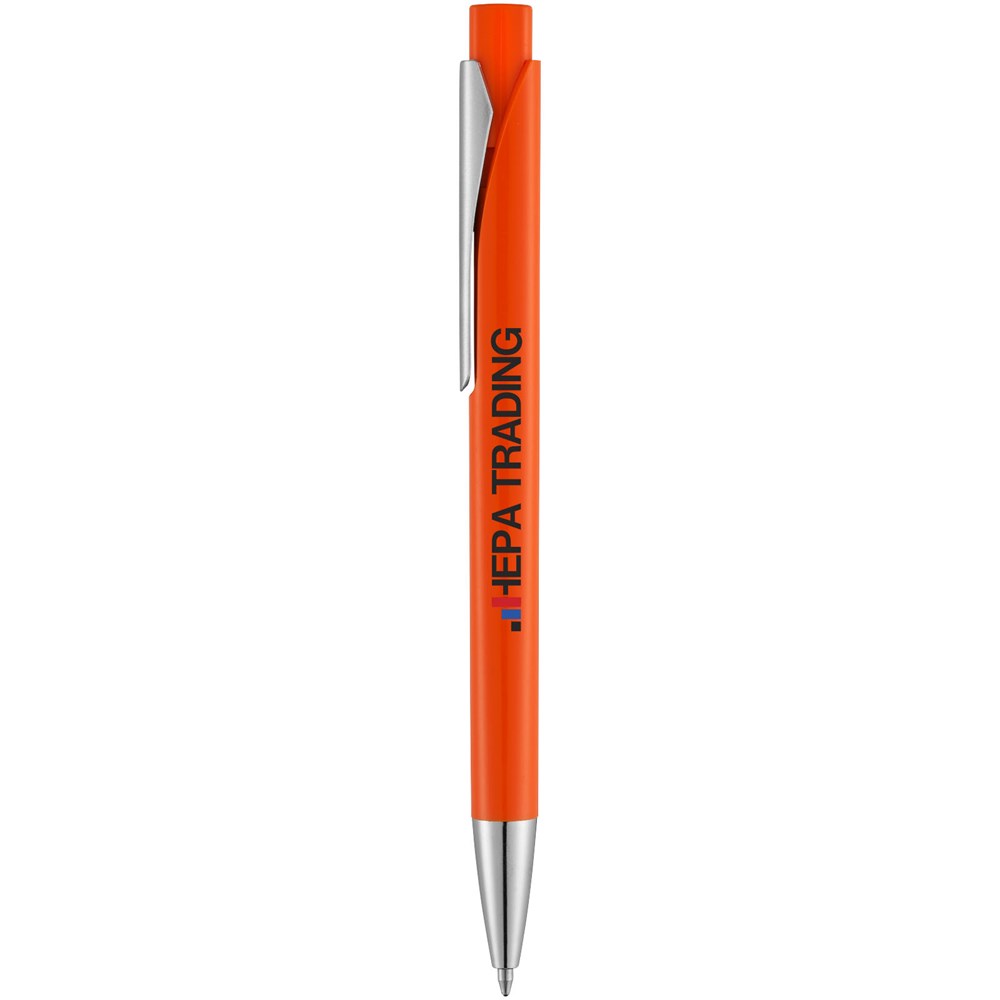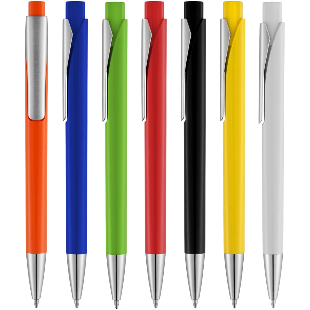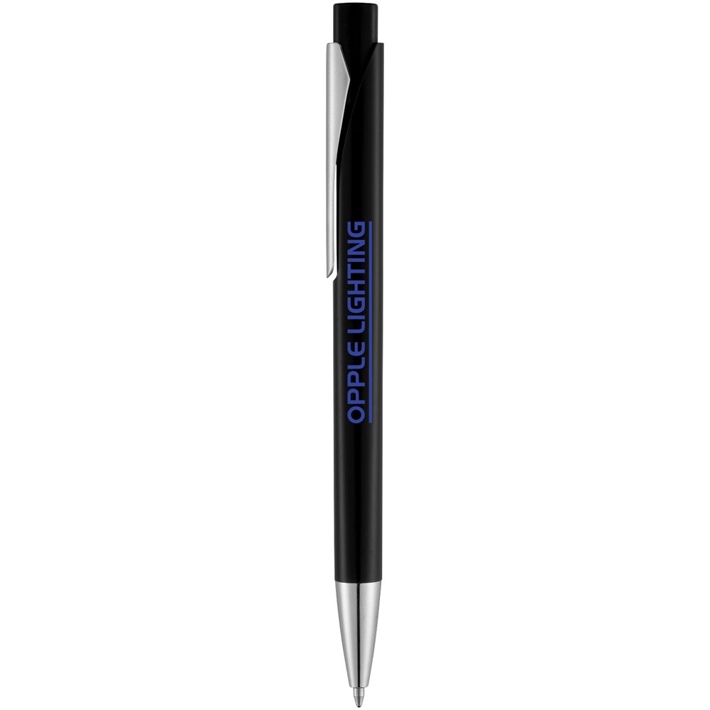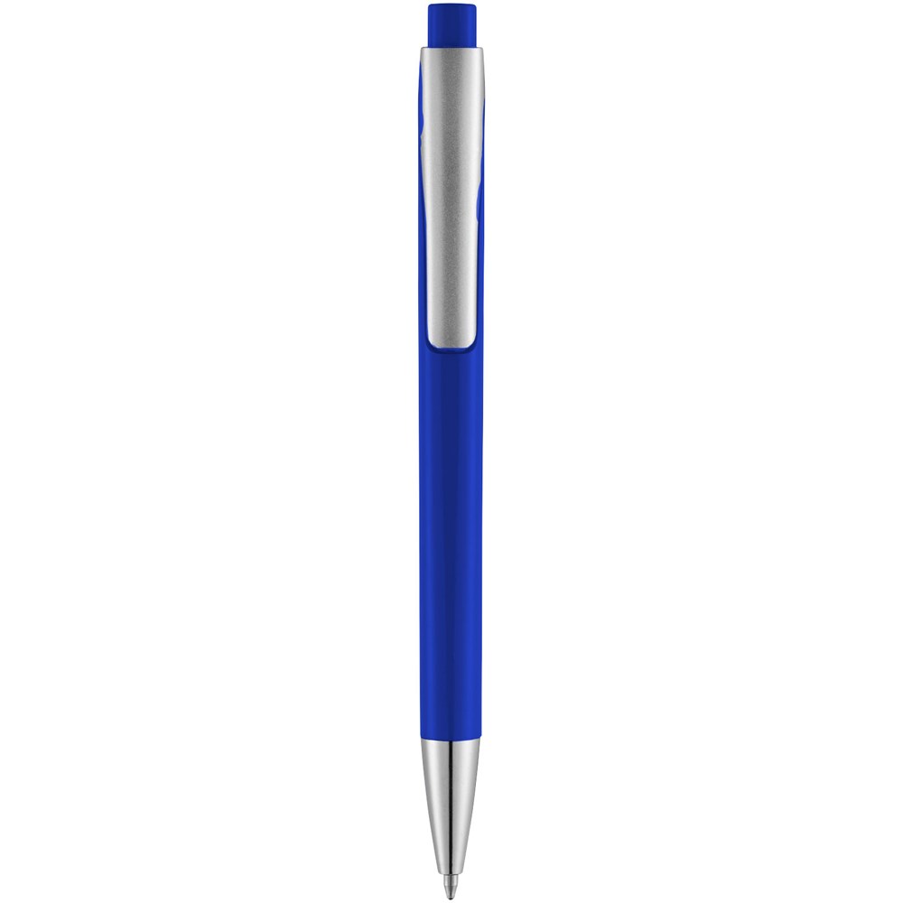 Balpen met afgevlakte schacht en klikmechanisme. Blauwschrijvend.