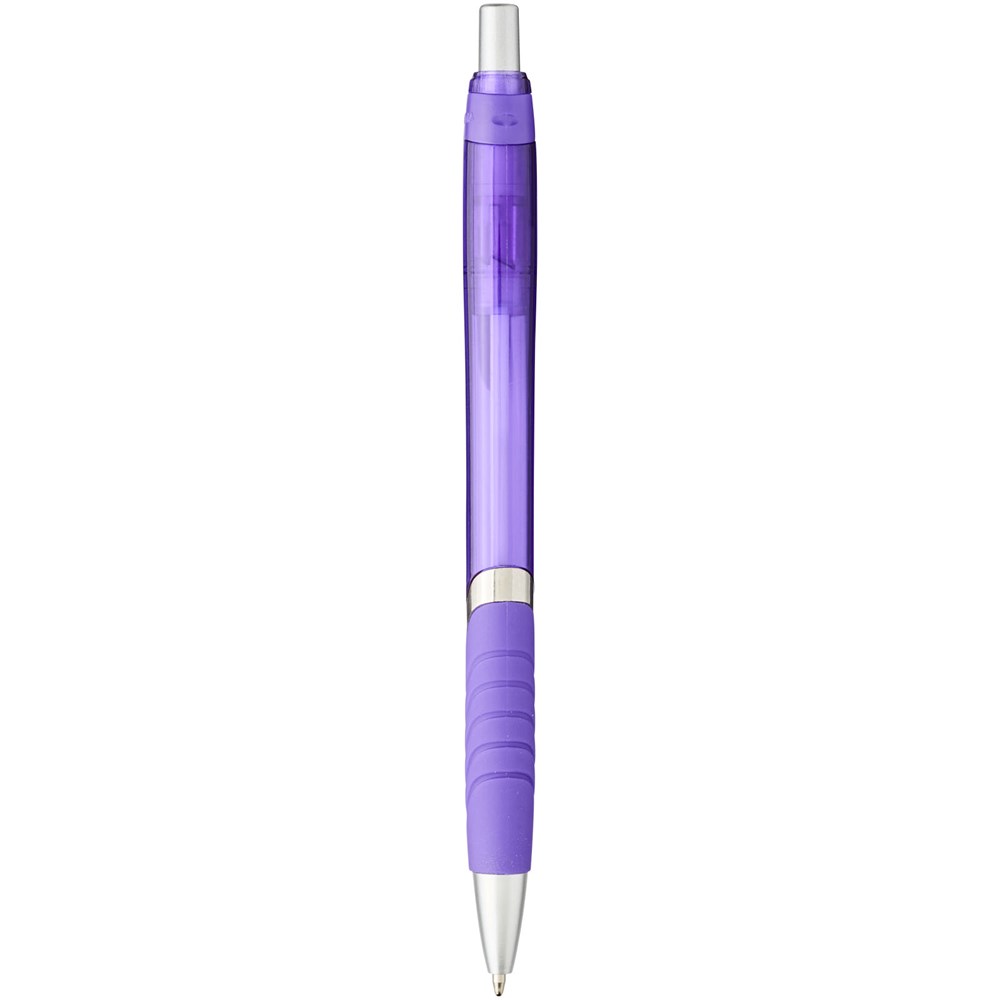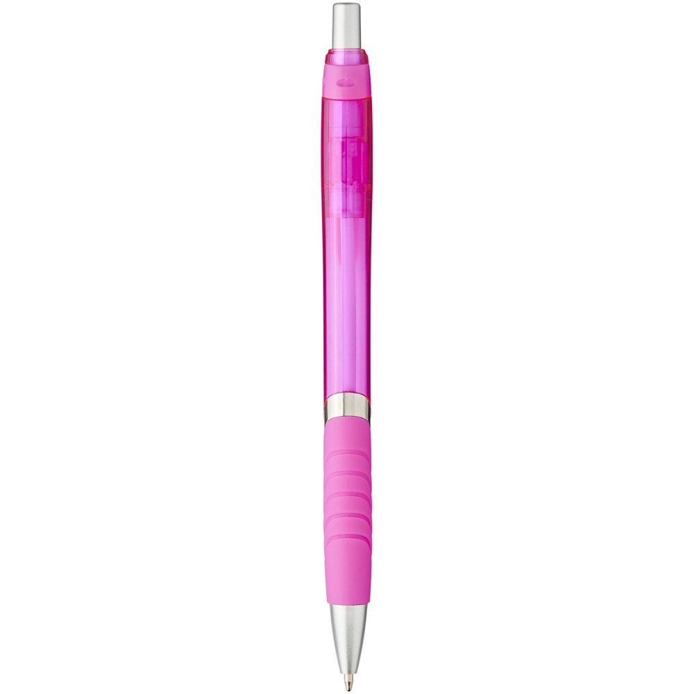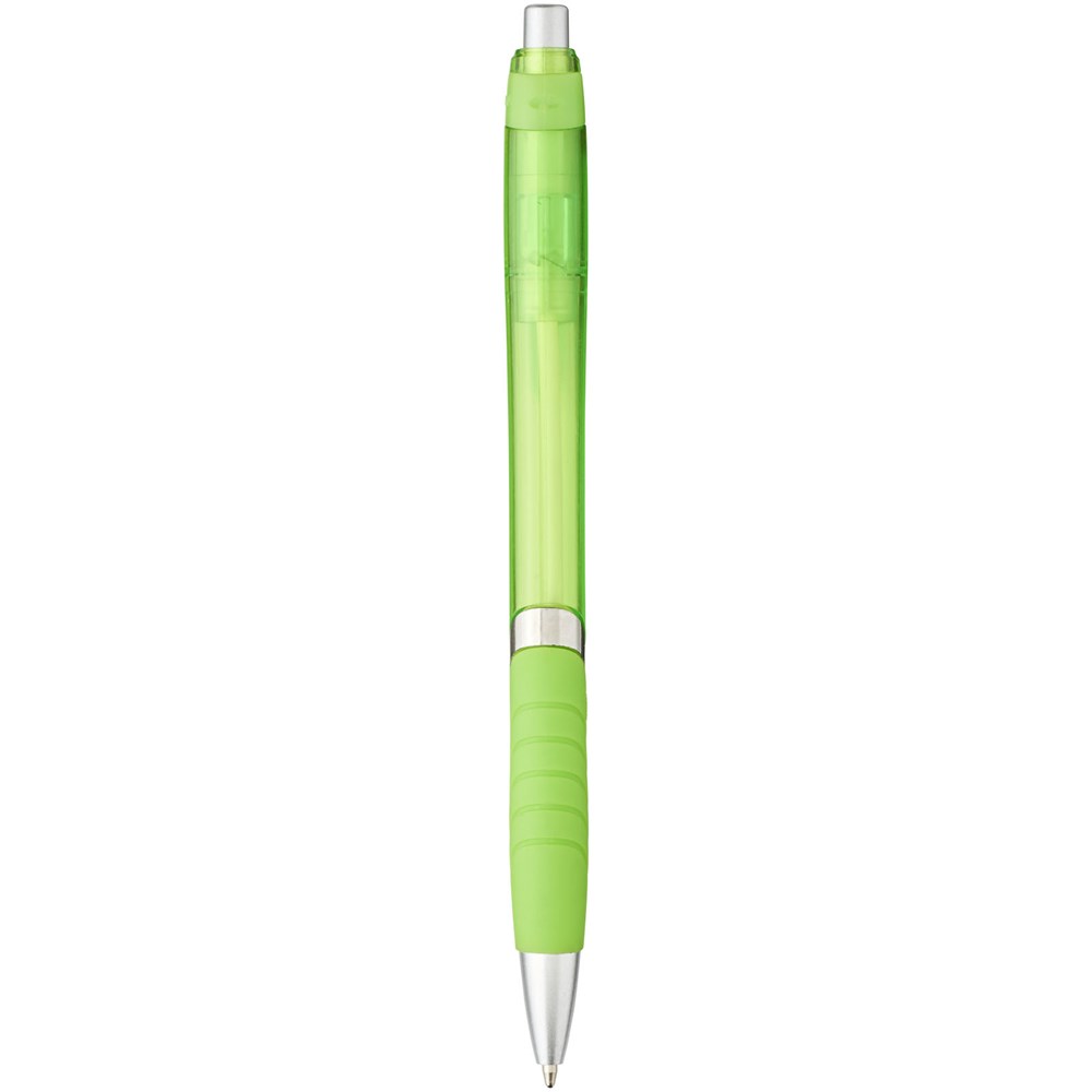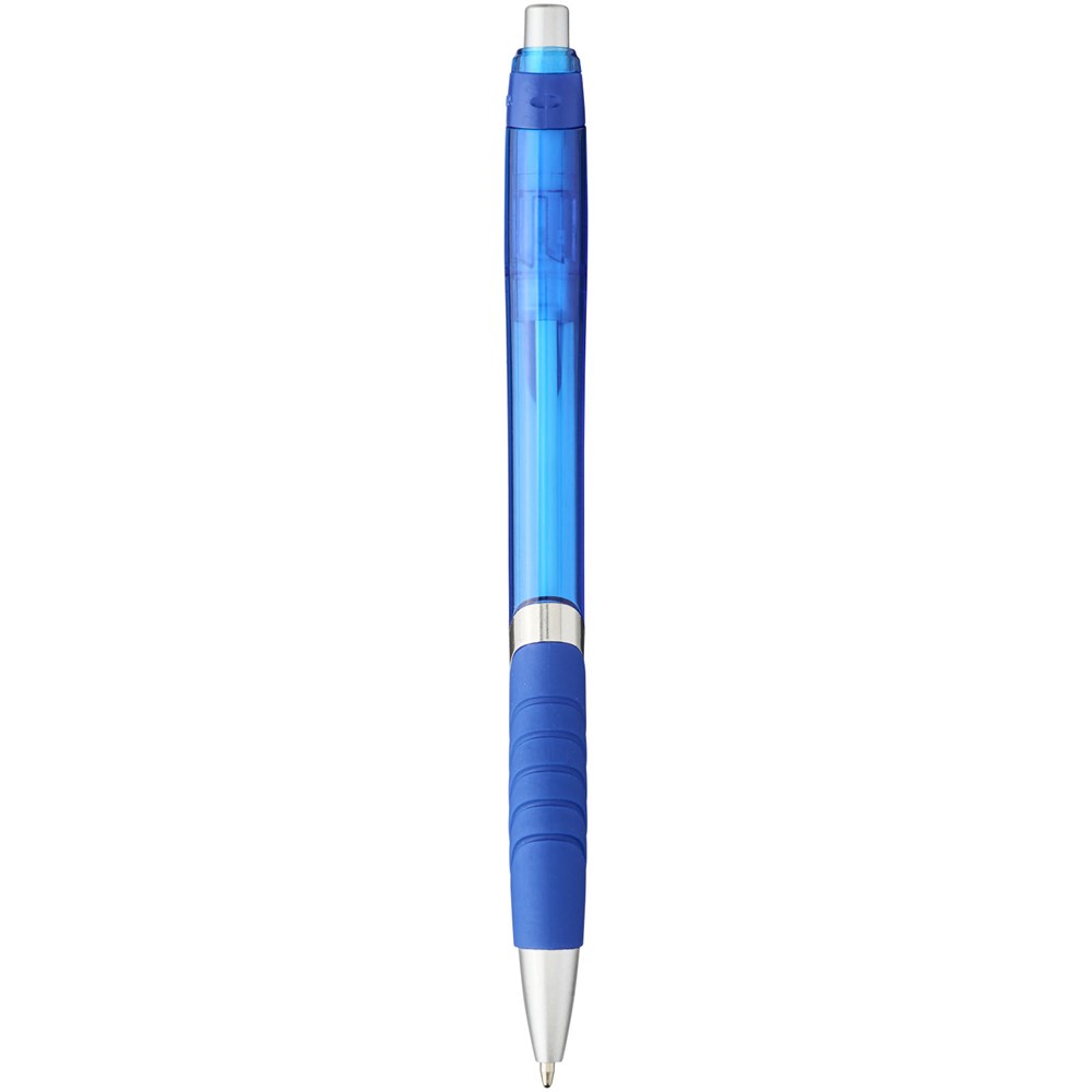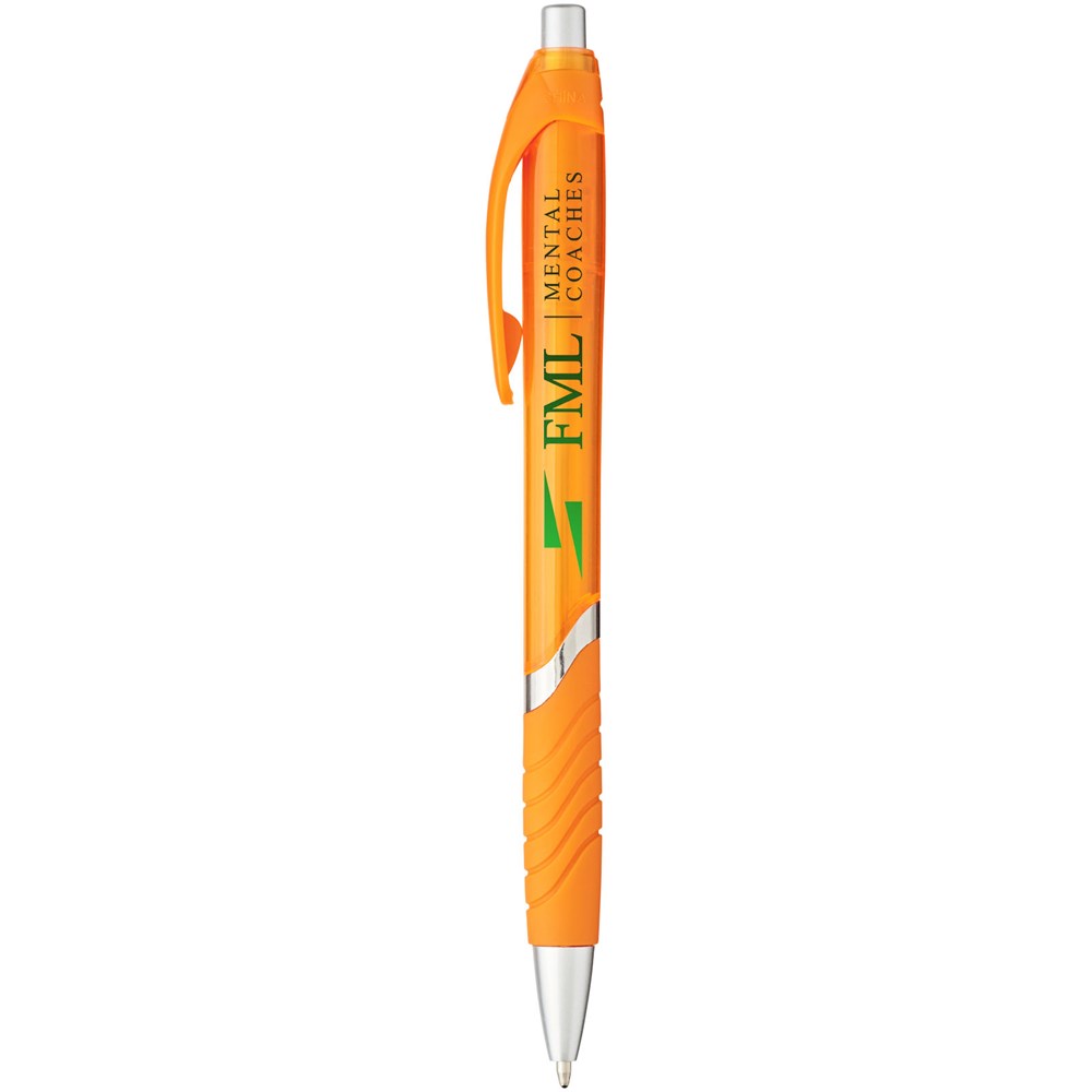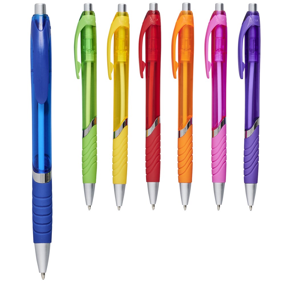 Balpen met klikmechanisme en rubberen greep. Zwartschrijvend.