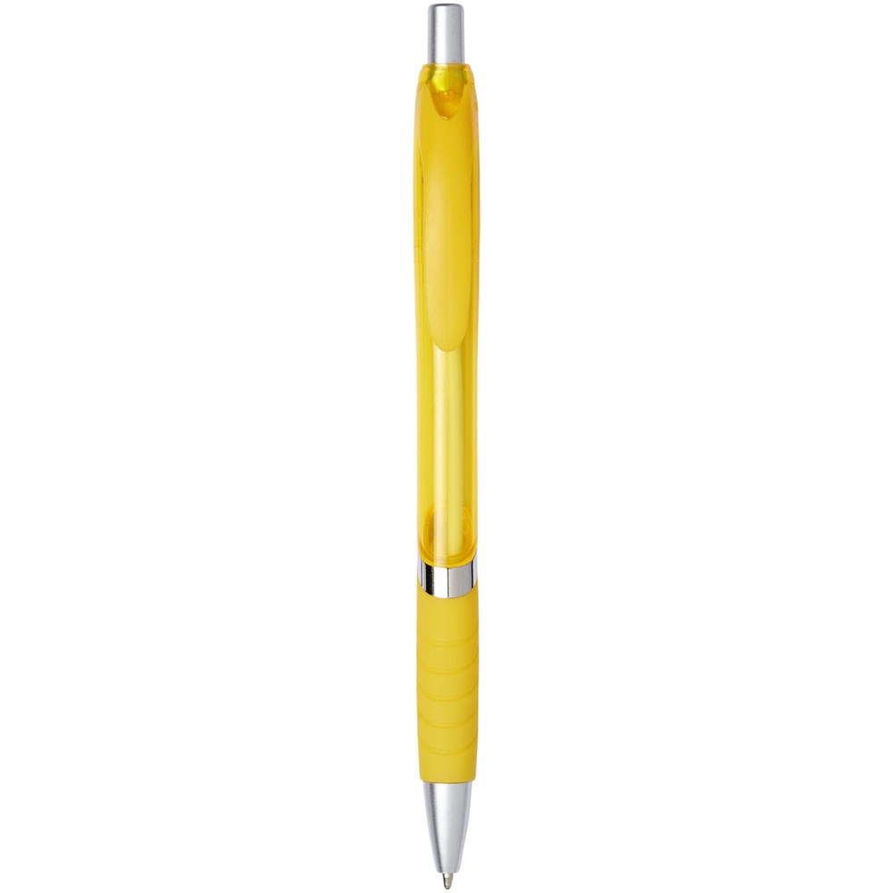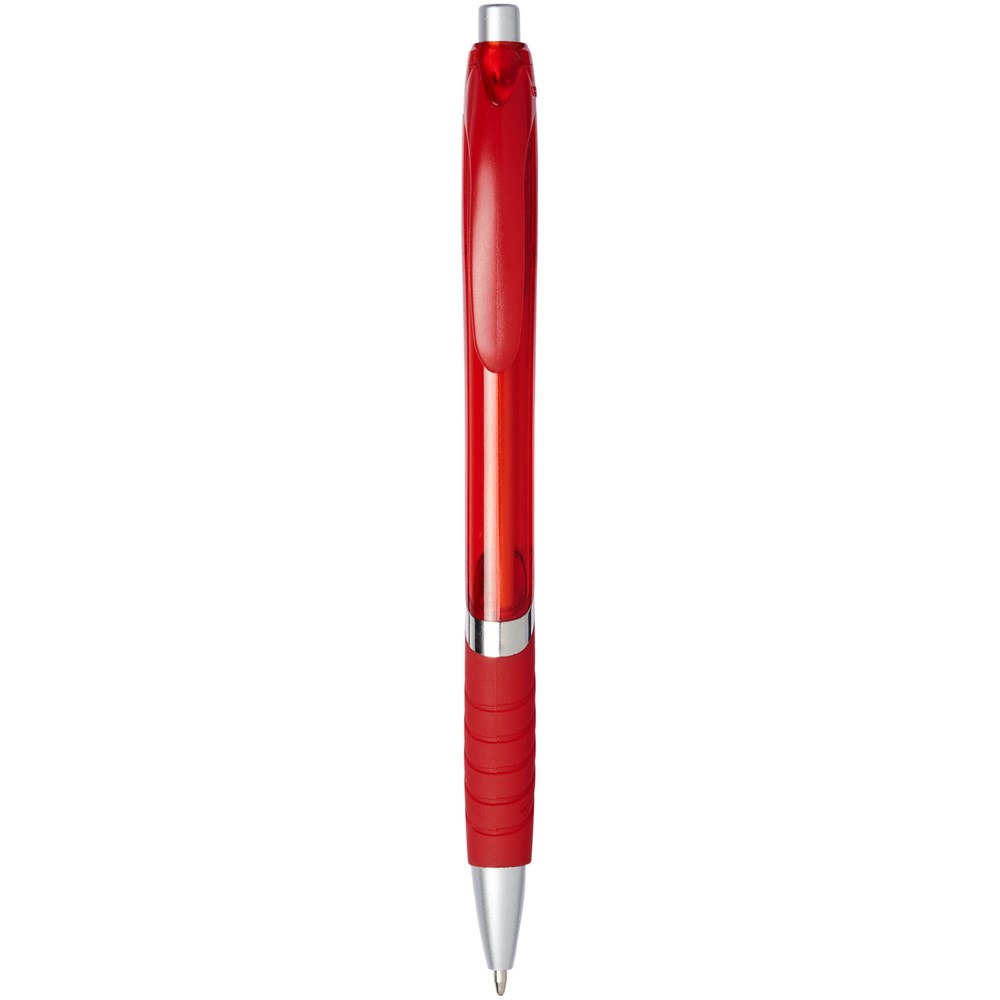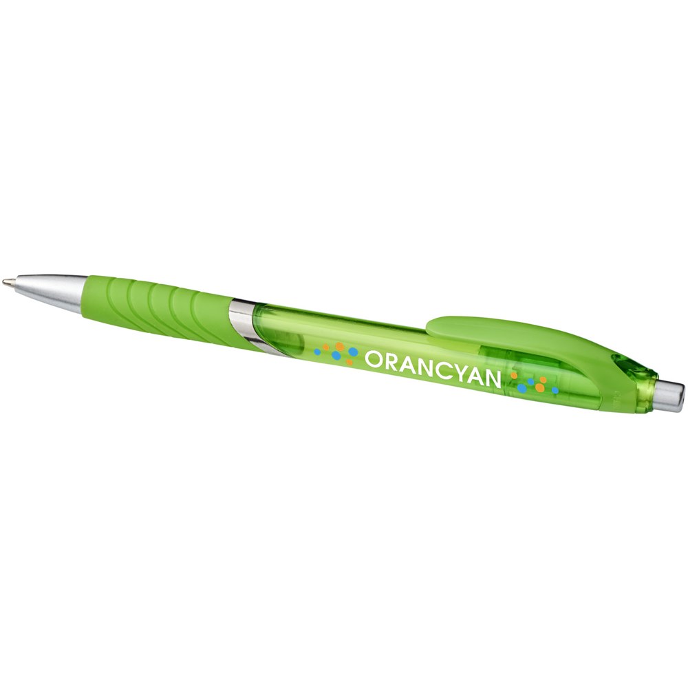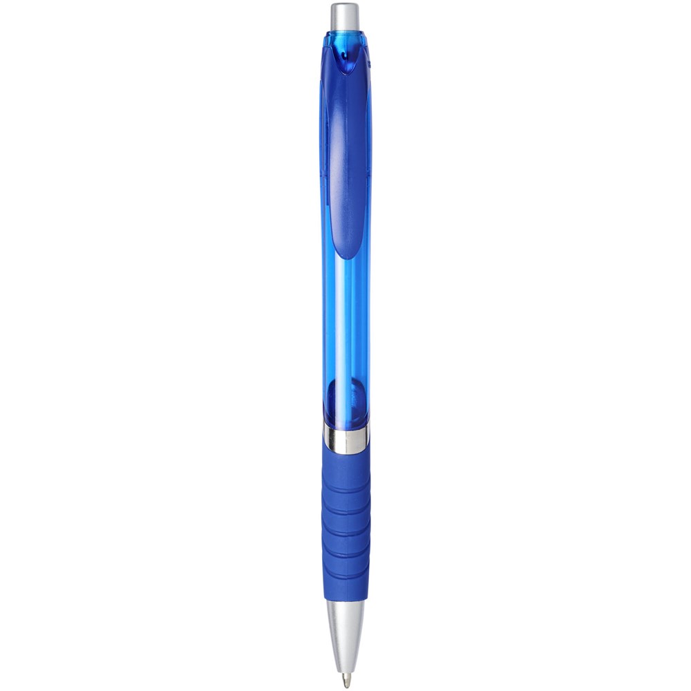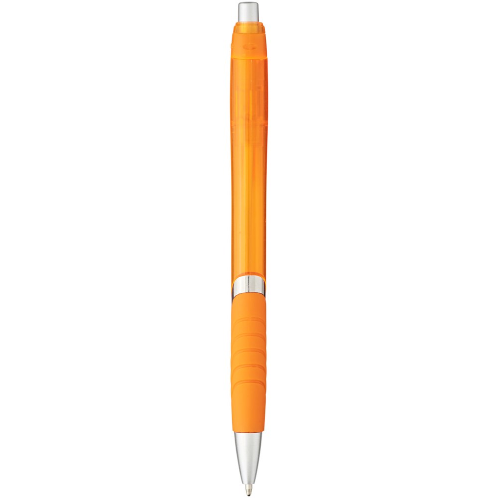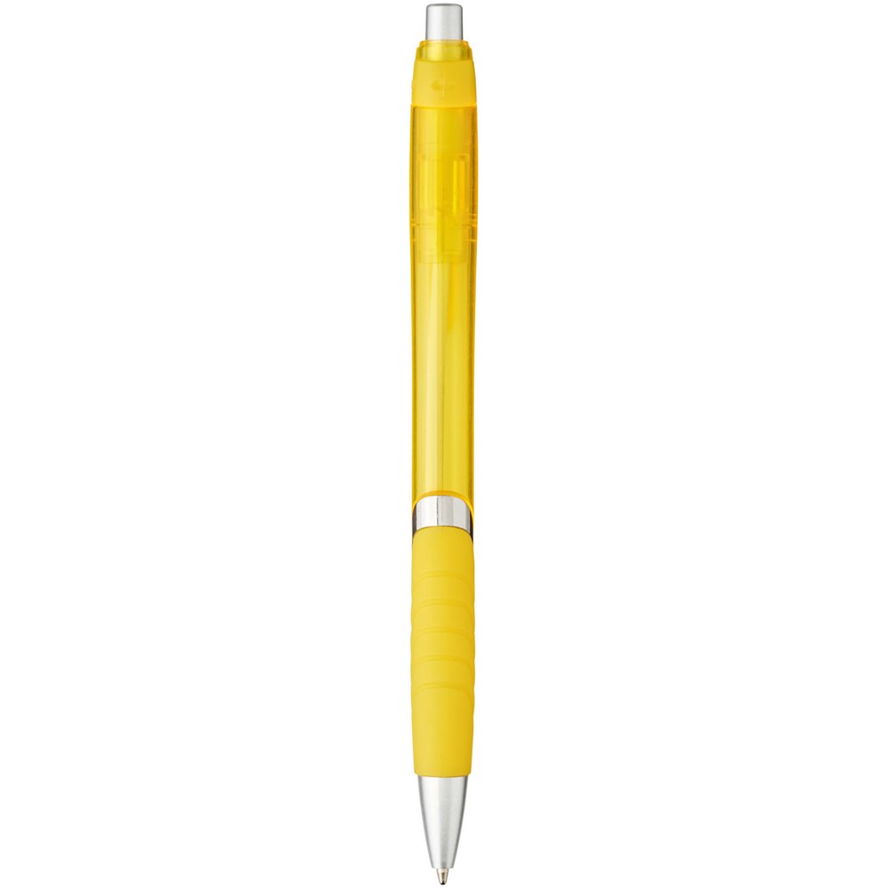 Balpen met klikmechanisme en rubberen greep. Zwartschrijvend.