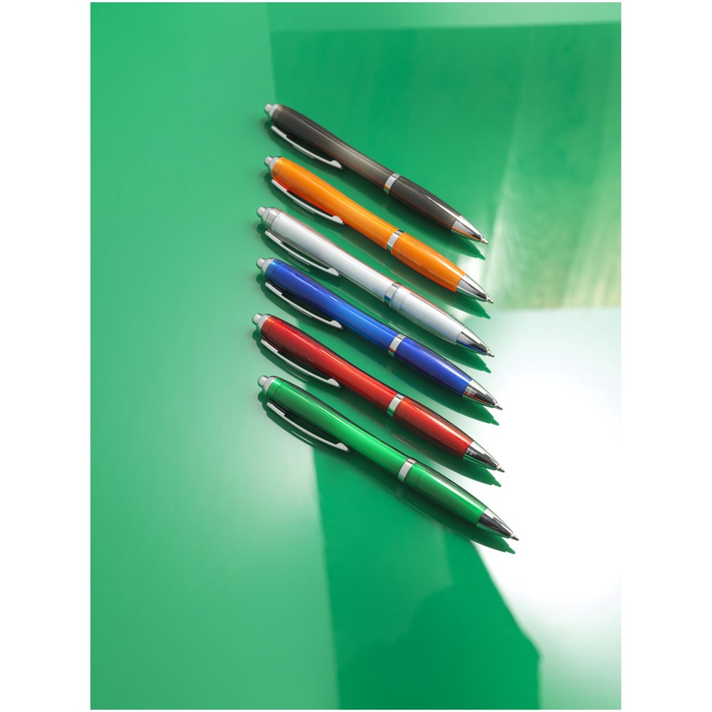 The Nash PET ballpoint pen with click action mechanism, has an upper and lower barrel both made of PET plastic. PET plastic is a clear, strong and lightweight plastic. It is recyclable and the most recycled type of plastic worldwide. This model is a more sustainable option in our bestselling Nash range and is available in a variety of colours.
