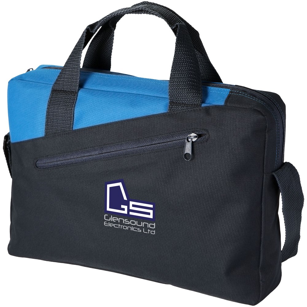 Portland polyester conferentietas. Conferentietas met dubbele handgreep en hoofdvak met ritssluiting en voorvak eveneens met ritssluiting. 600D polyester.