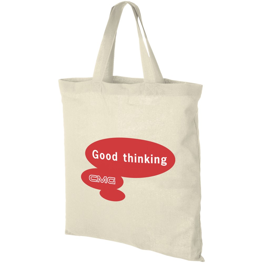 Katoenen draagtas met open hoofdvak. Draaghoogte 19 cm.