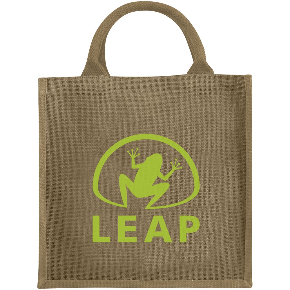 Jute draagtas met gelamineerd open hoofdvak en inzetstuk. Katoenen rolgrepen.