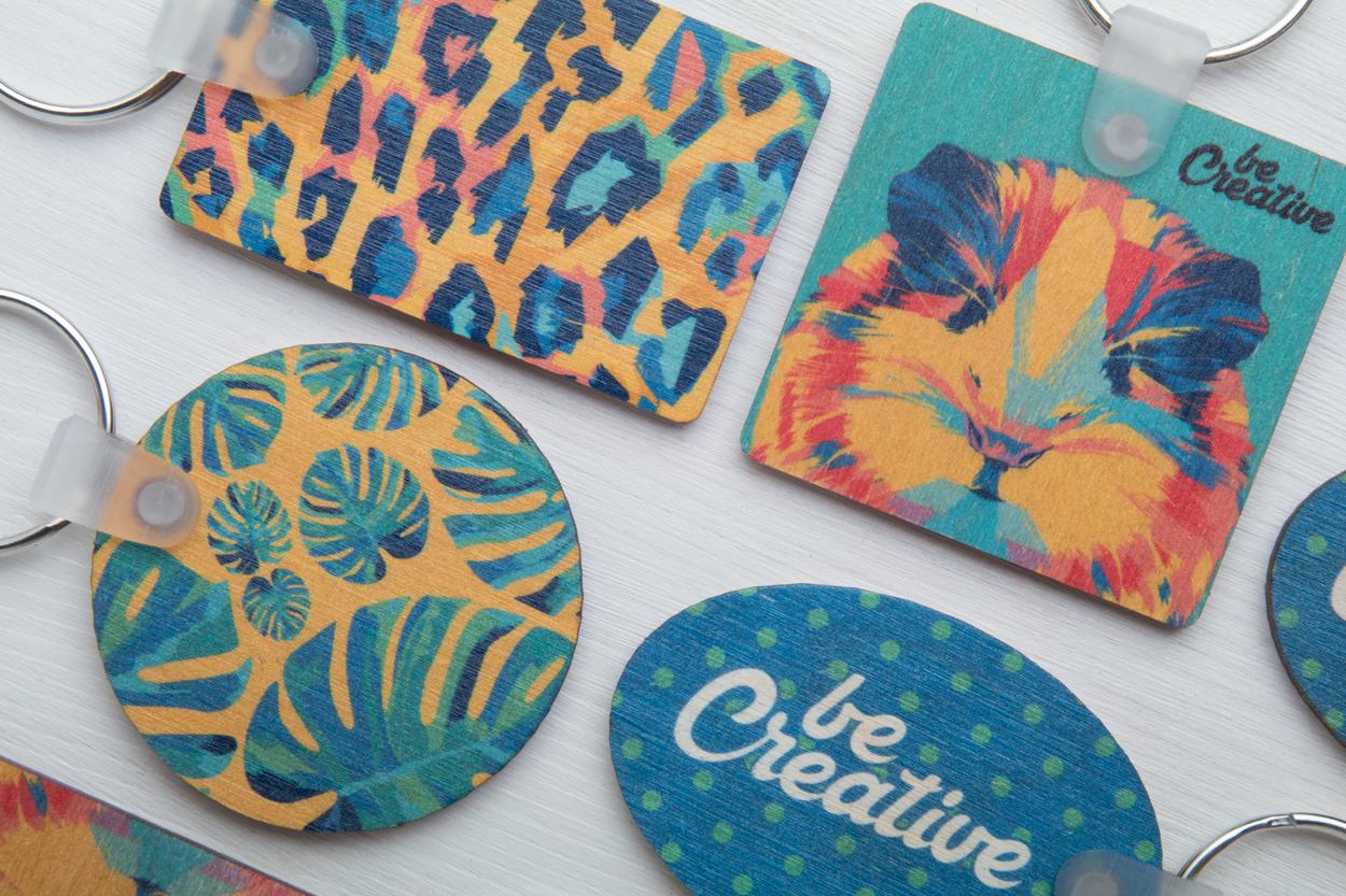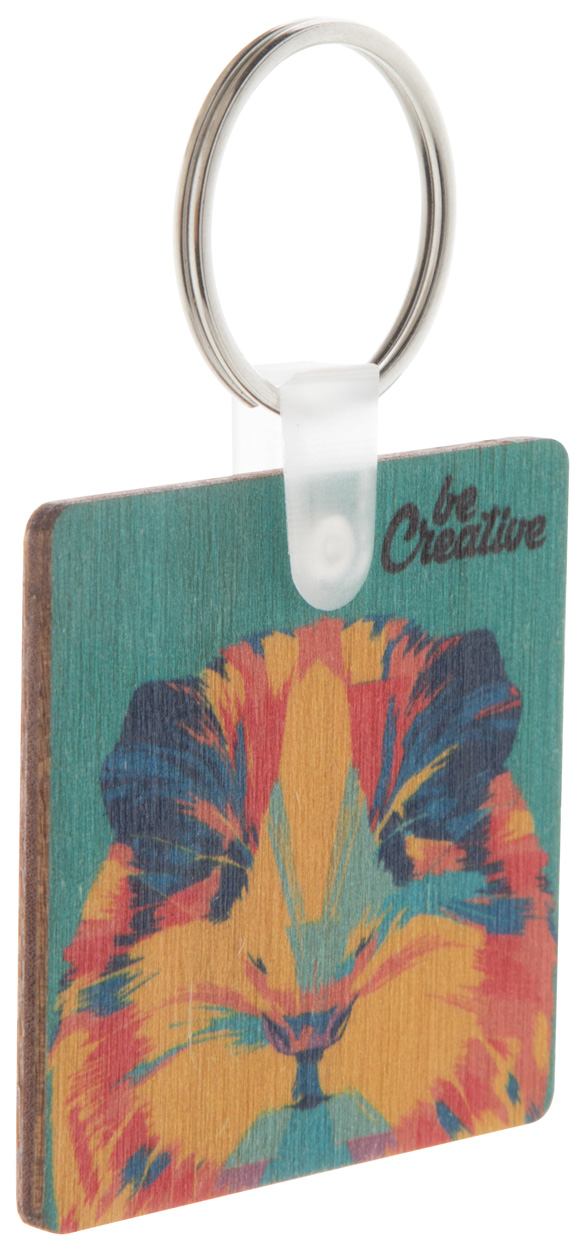 Vierkante, gelamineerde berkenhouten sleutelhanger met full colour bedrukking. Prijs is inclusief UV-bedrulling op één zijde. MOQ: 200 stuk.