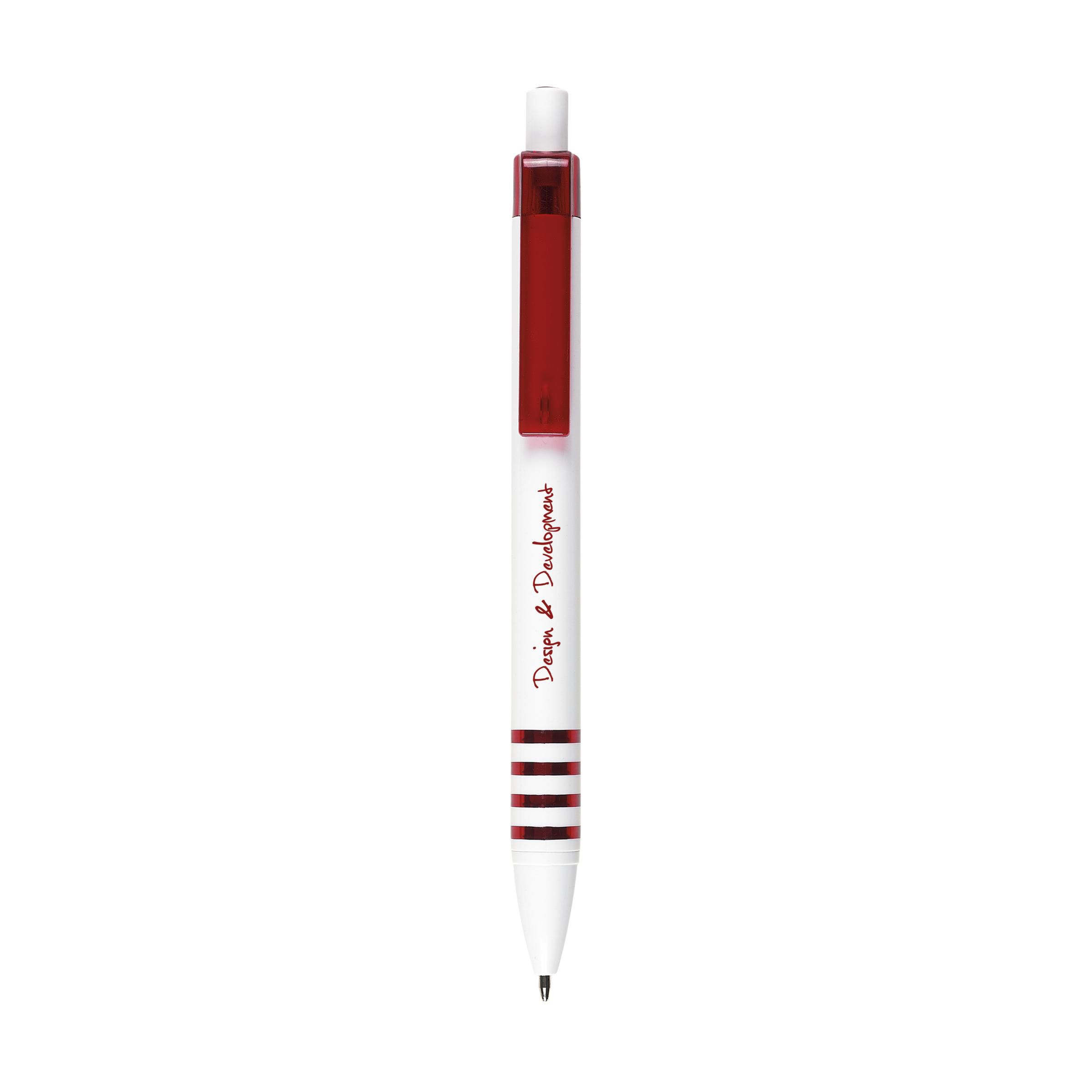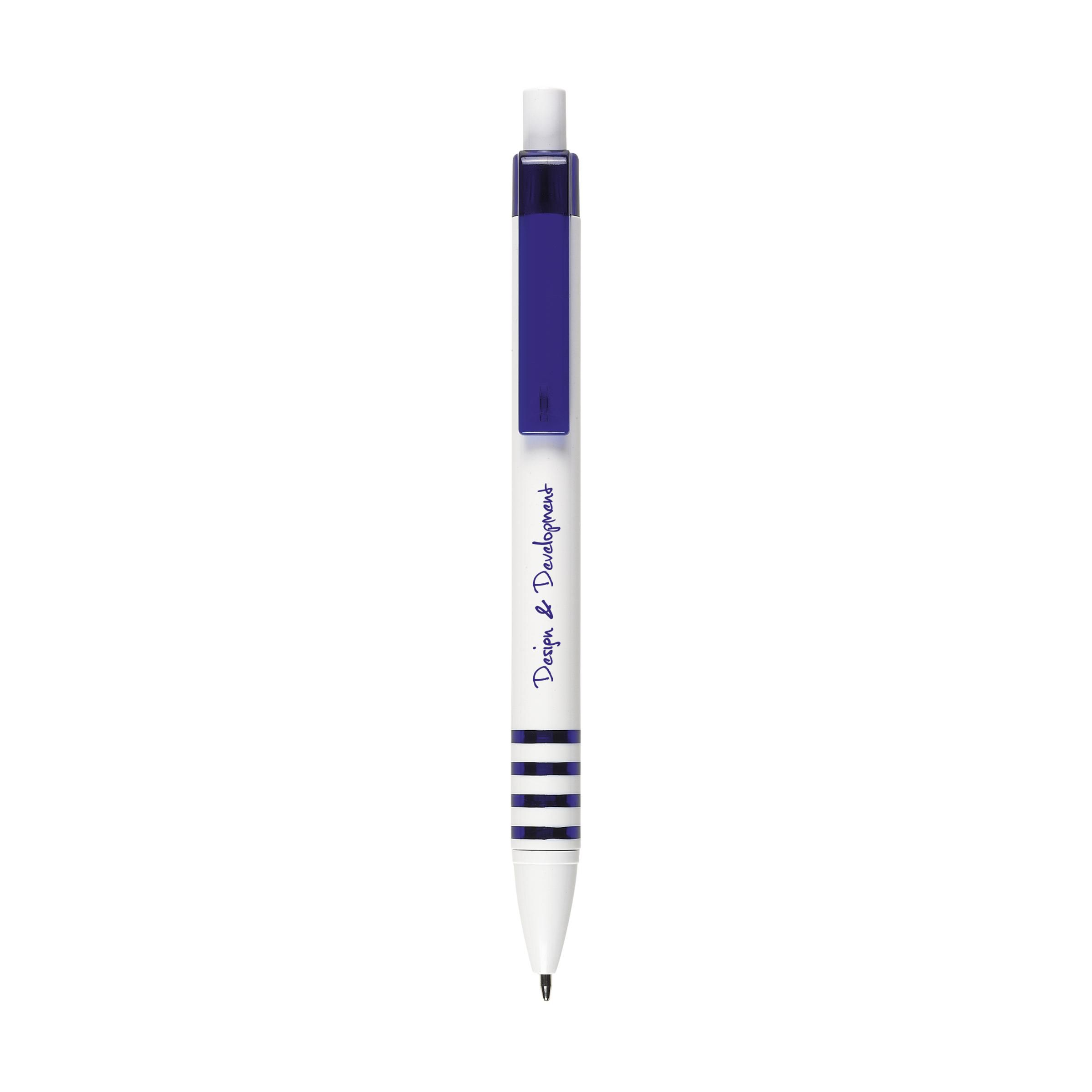 Blauwschrijvende balpen met transparantgekleurde clip.