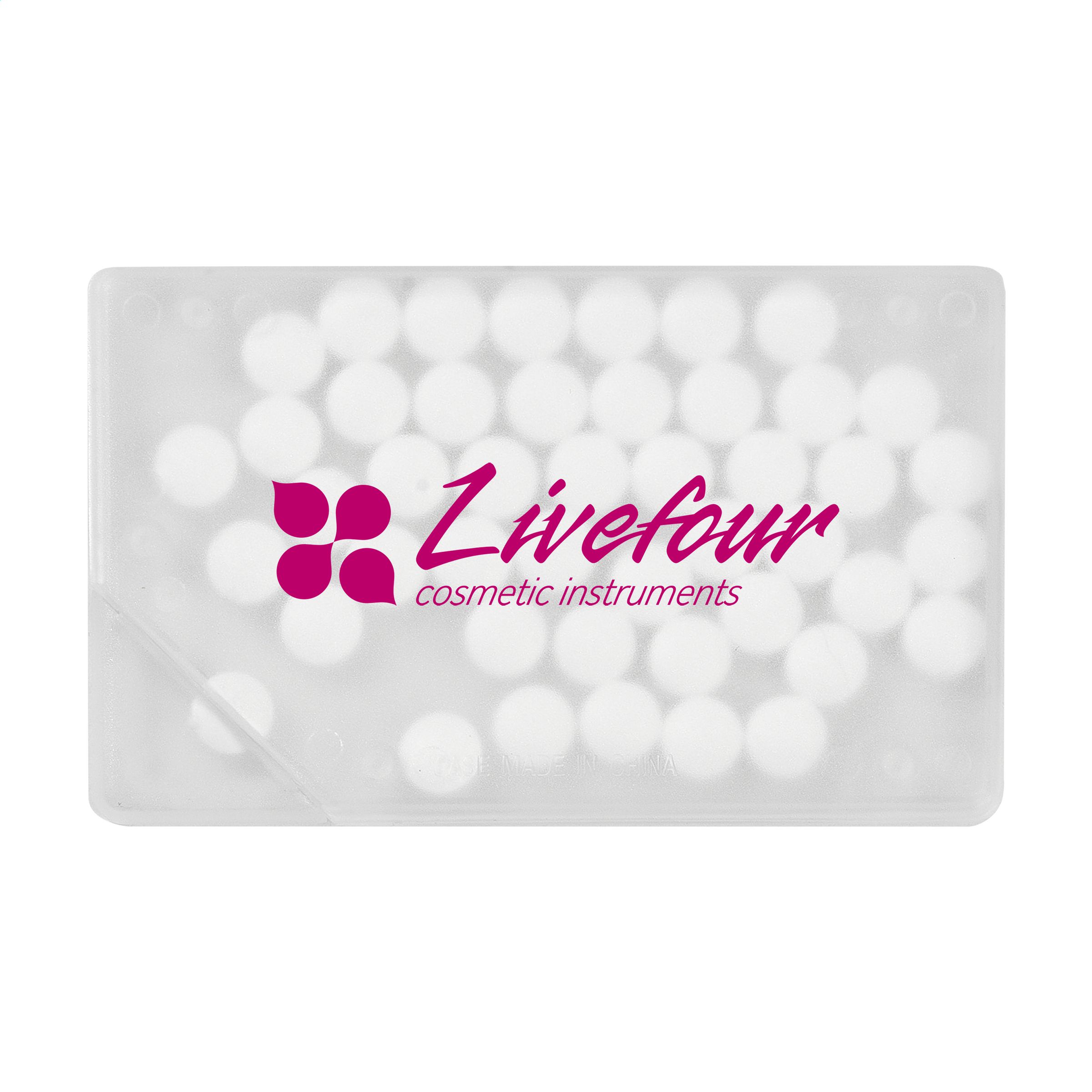 Dispenser met ca. 8 g (50 stuks) suikervrije pepermuntjes.